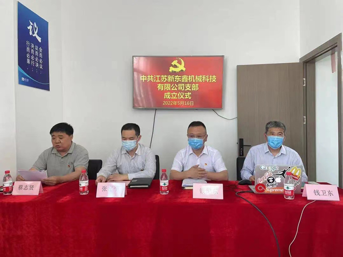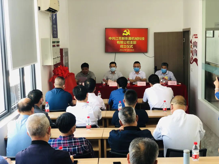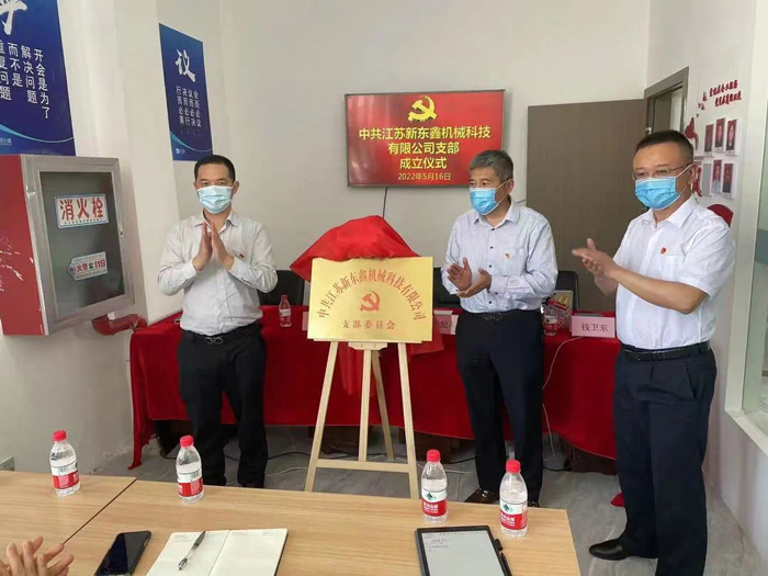 經(jīng)中共江蘇省張家港高新技術(shù)產(chǎn)業(yè)開發(fā)區(qū)工作委員會同意,新建中共江蘇新東鑫機械科技有限公司支部委員會,隸屬韓山村黨委管理,由錢衛(wèi)東同志任黨支部書記。5月16日下午,在新東鑫公司舉行了黨支部成立揭牌儀式,高新區(qū)黨群工作部部長張左平同志參加了此次活動。